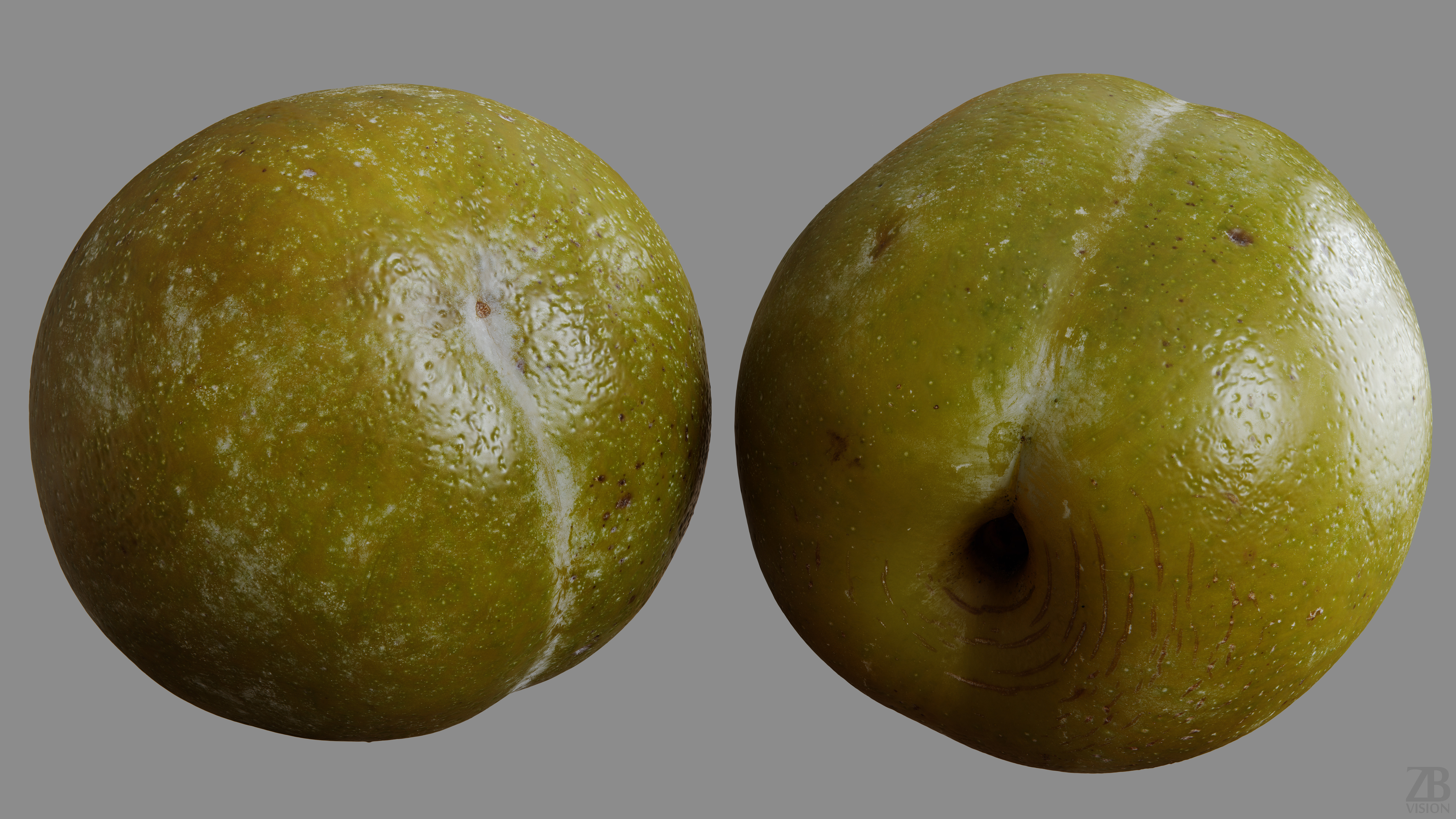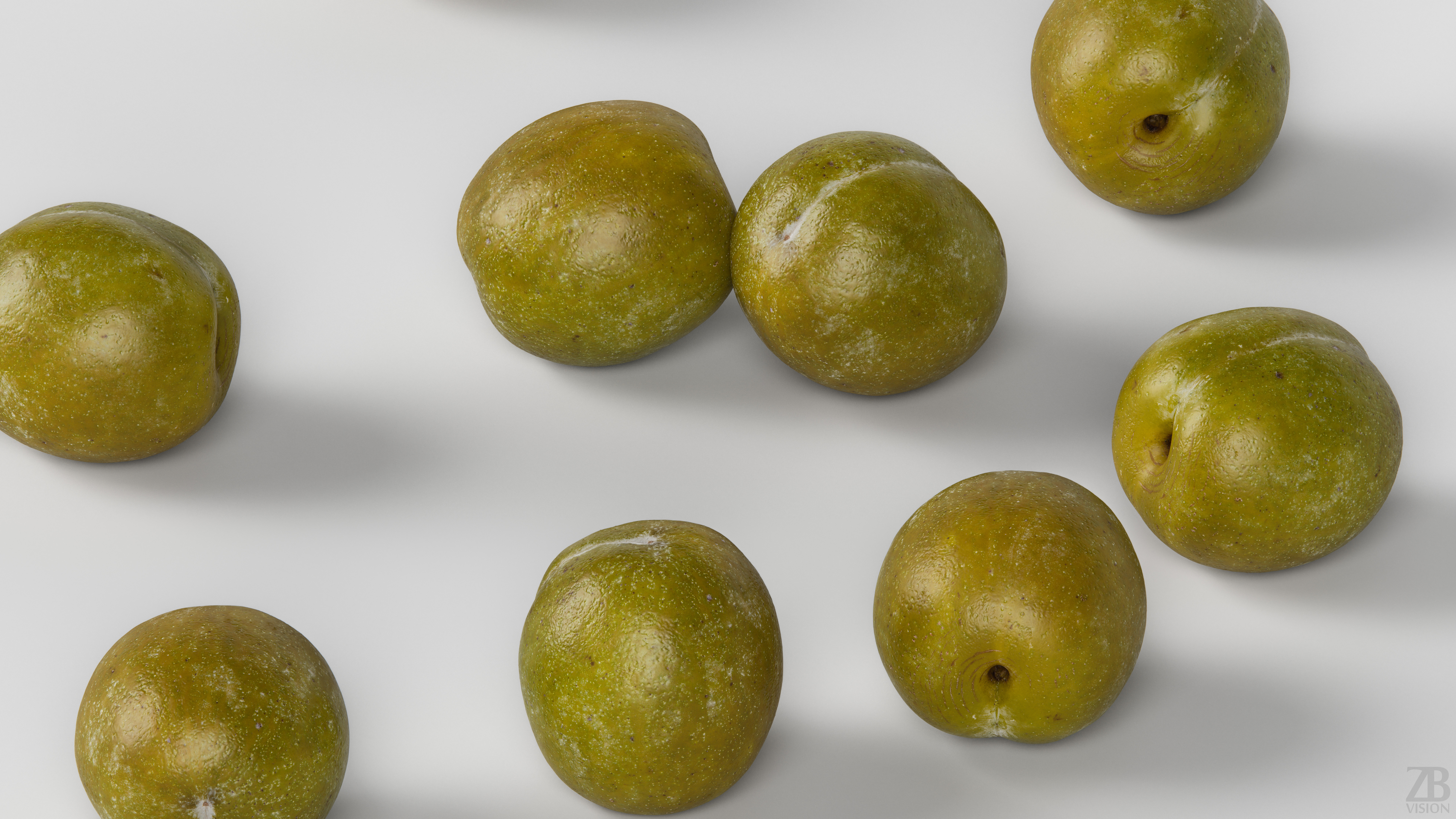 This is a 3D model of a greengage, aka Reine Claude plum. It was scanned and prepared for photorealistic renderings, close-ups, stills, and animation. The greengage model is ready to be inserted into your scene out of the box.