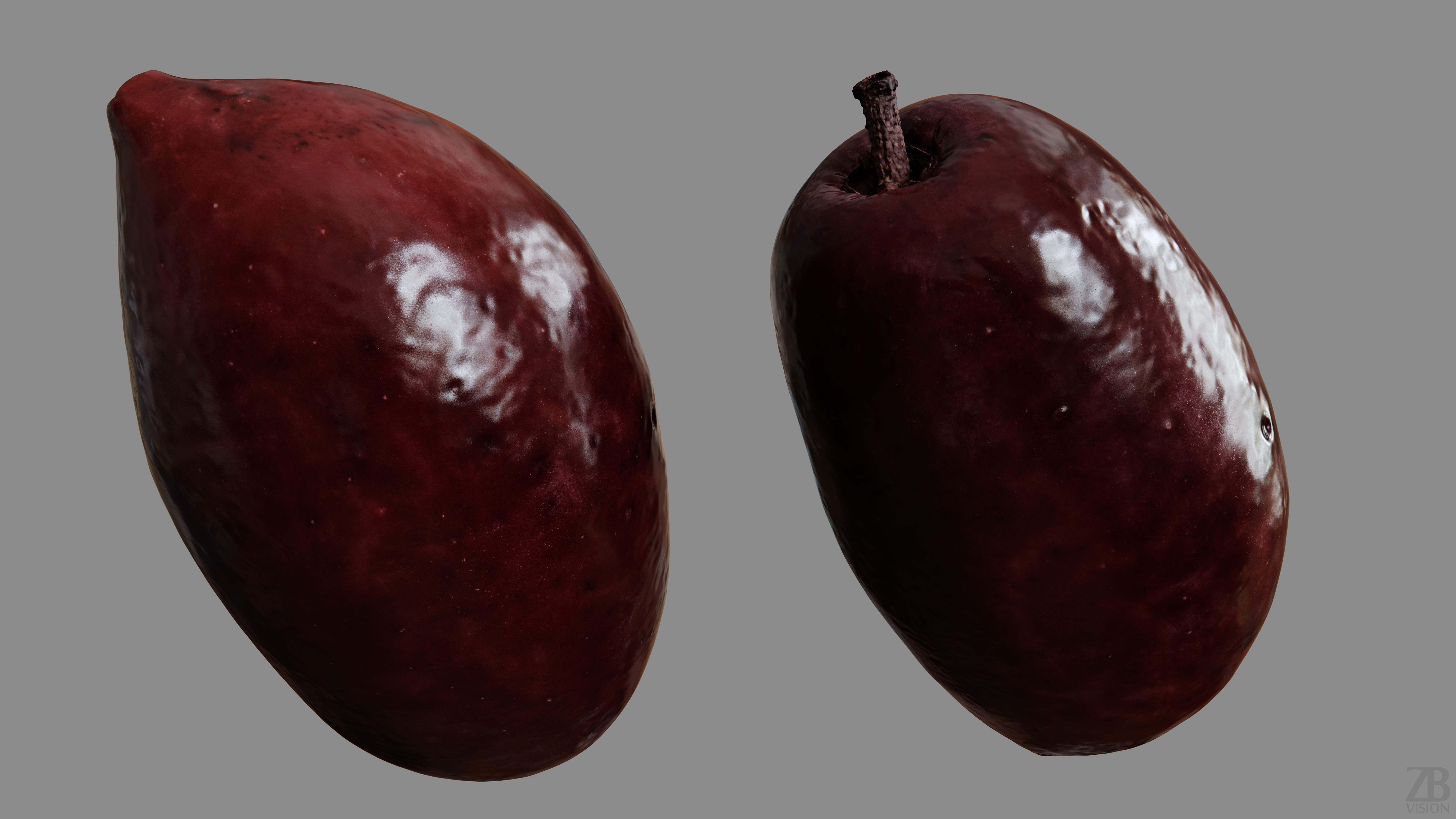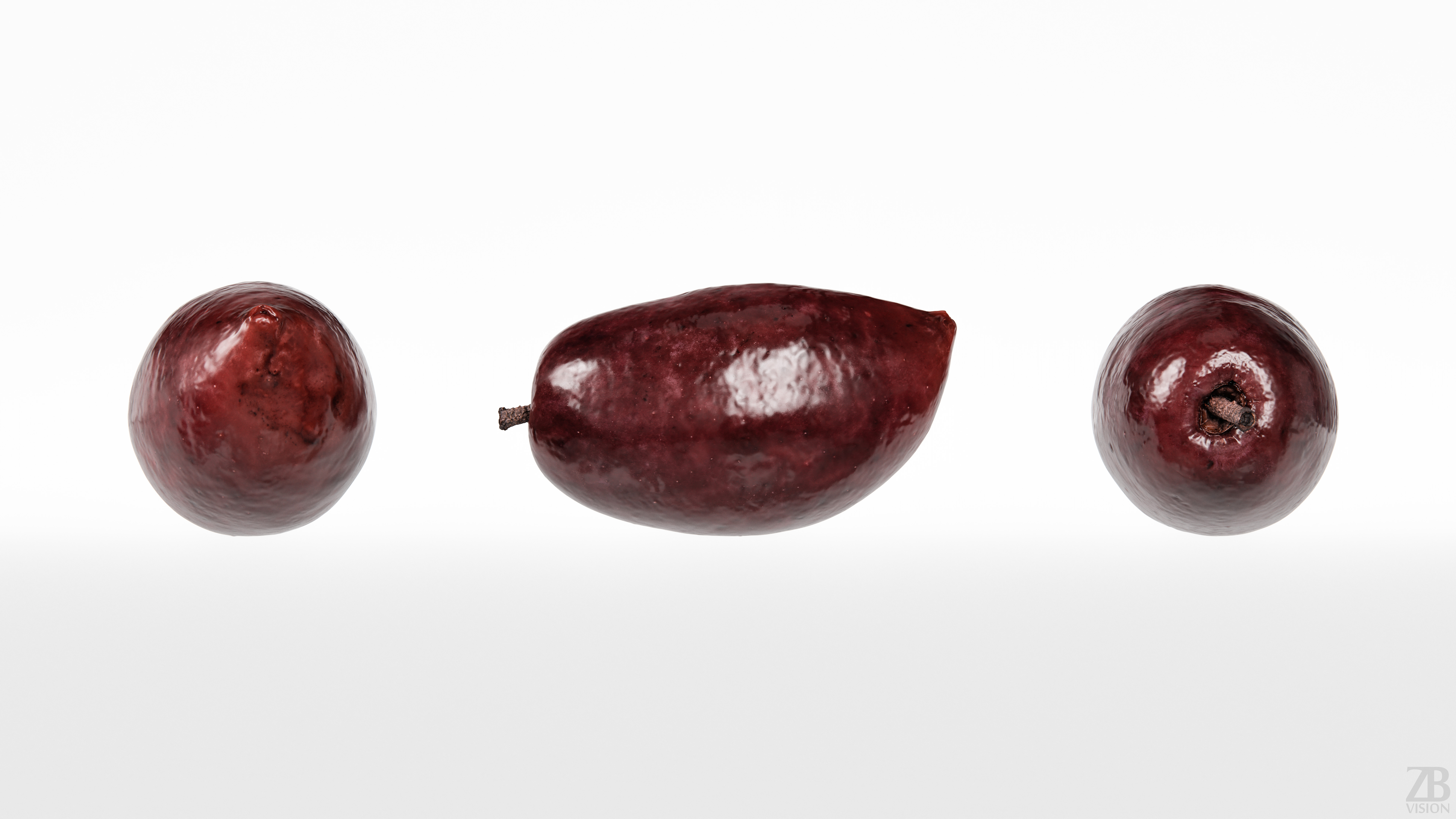 This is a 3D model of an olive, kalamata variety. It was scanned and prepared for photorealistic renderings, close-ups, stills, and animation. The olive model is ready to be inserted into your scene out of the box.