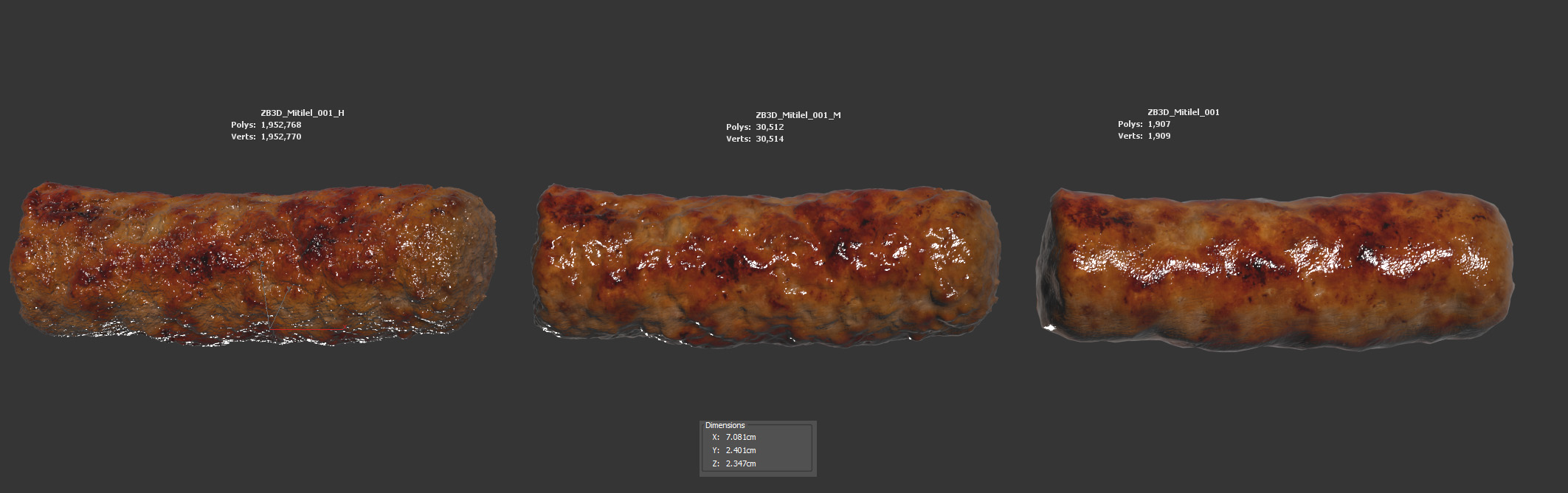 This is a 3D model of a mititei/mici aka Ćevapi/ćevapčići. It was scanned and prepared for photorealistic renderings, close-ups, stills, and animation. The mititel model is ready to be inserted into your scene out of the box.