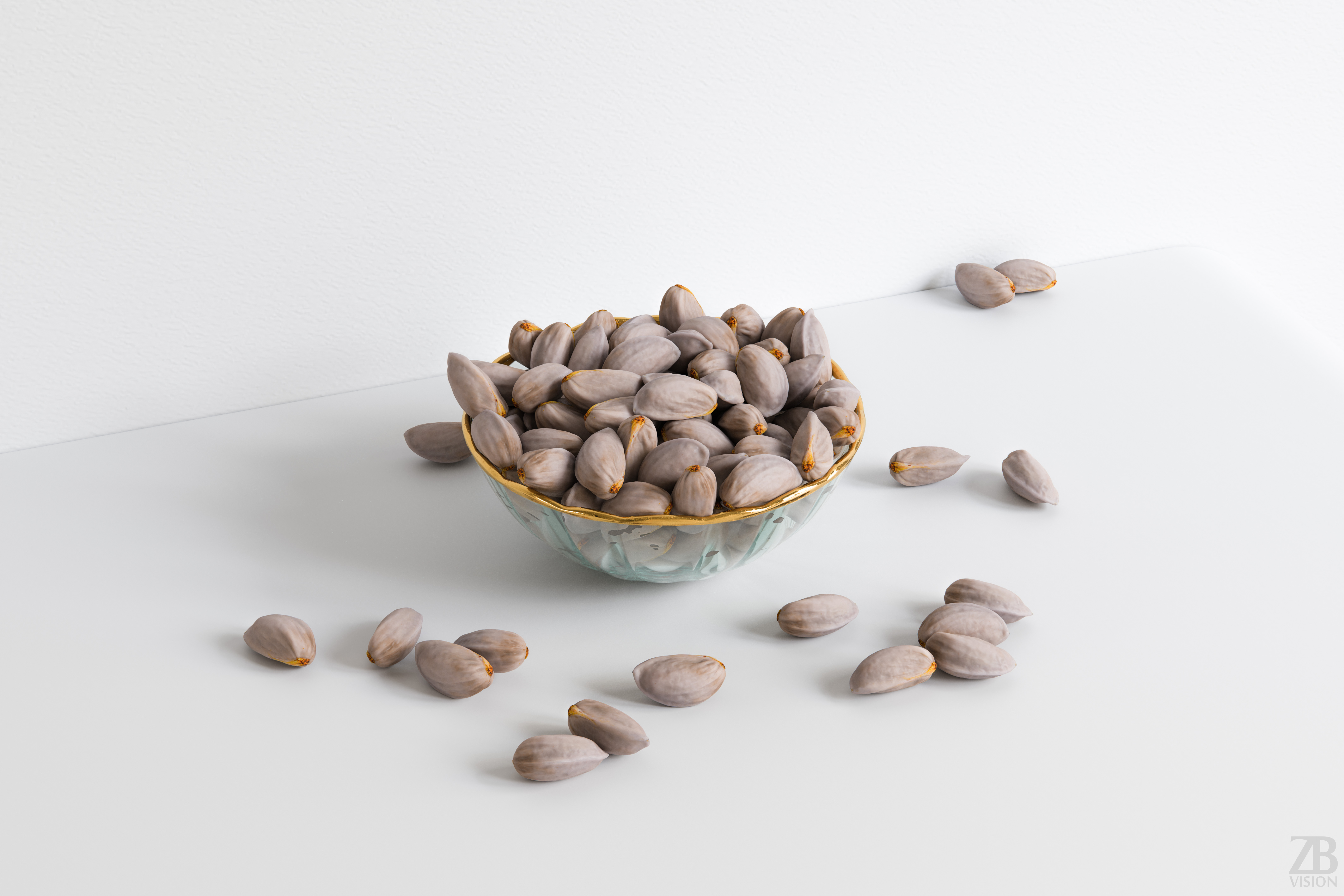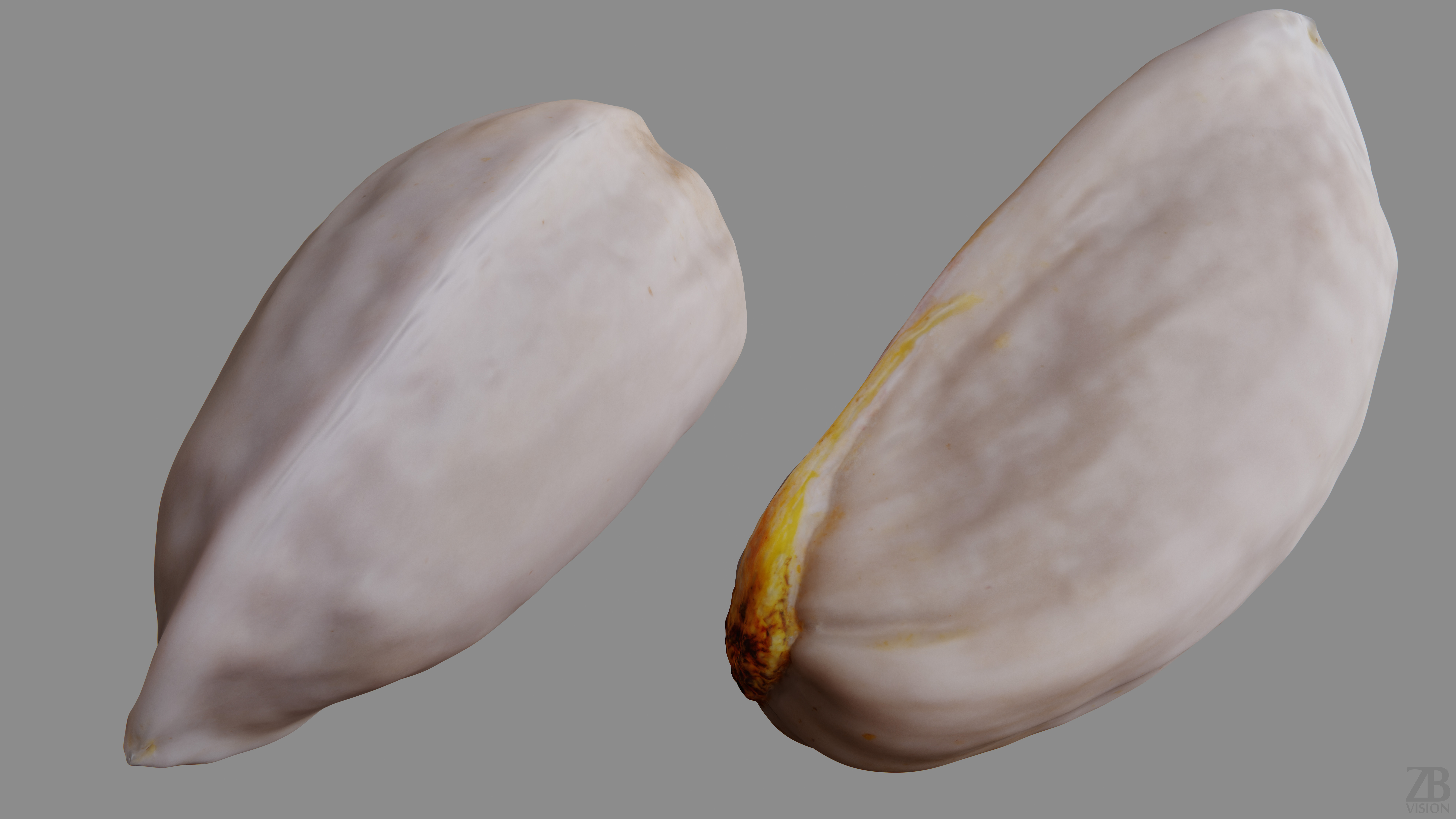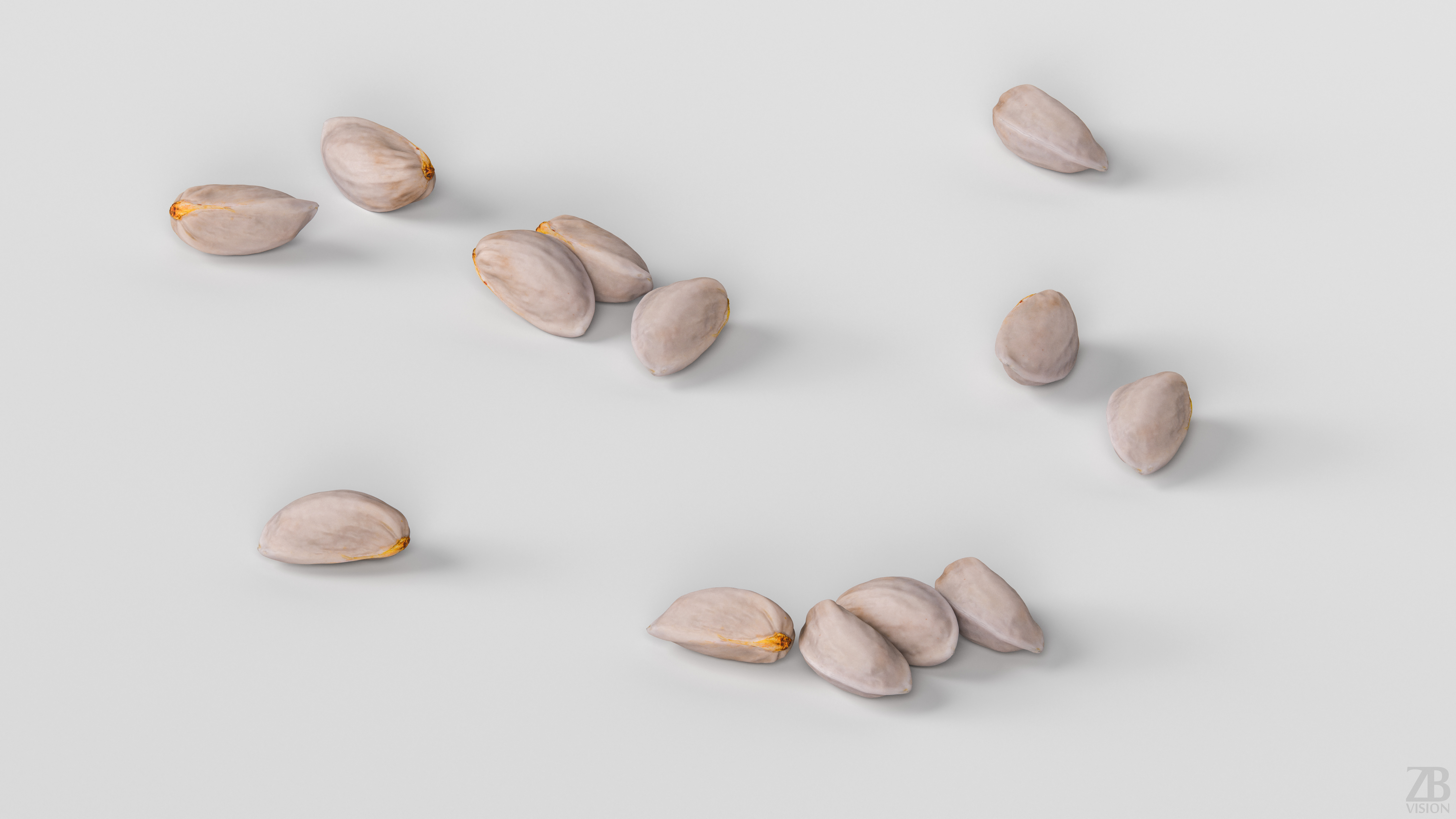 This is a 3D model of a fresh raw pistachio. It was scanned and prepared for photorealistic renderings, close-ups, stills, and animation. The pistachio model is ready to be inserted into your scene out of the box.