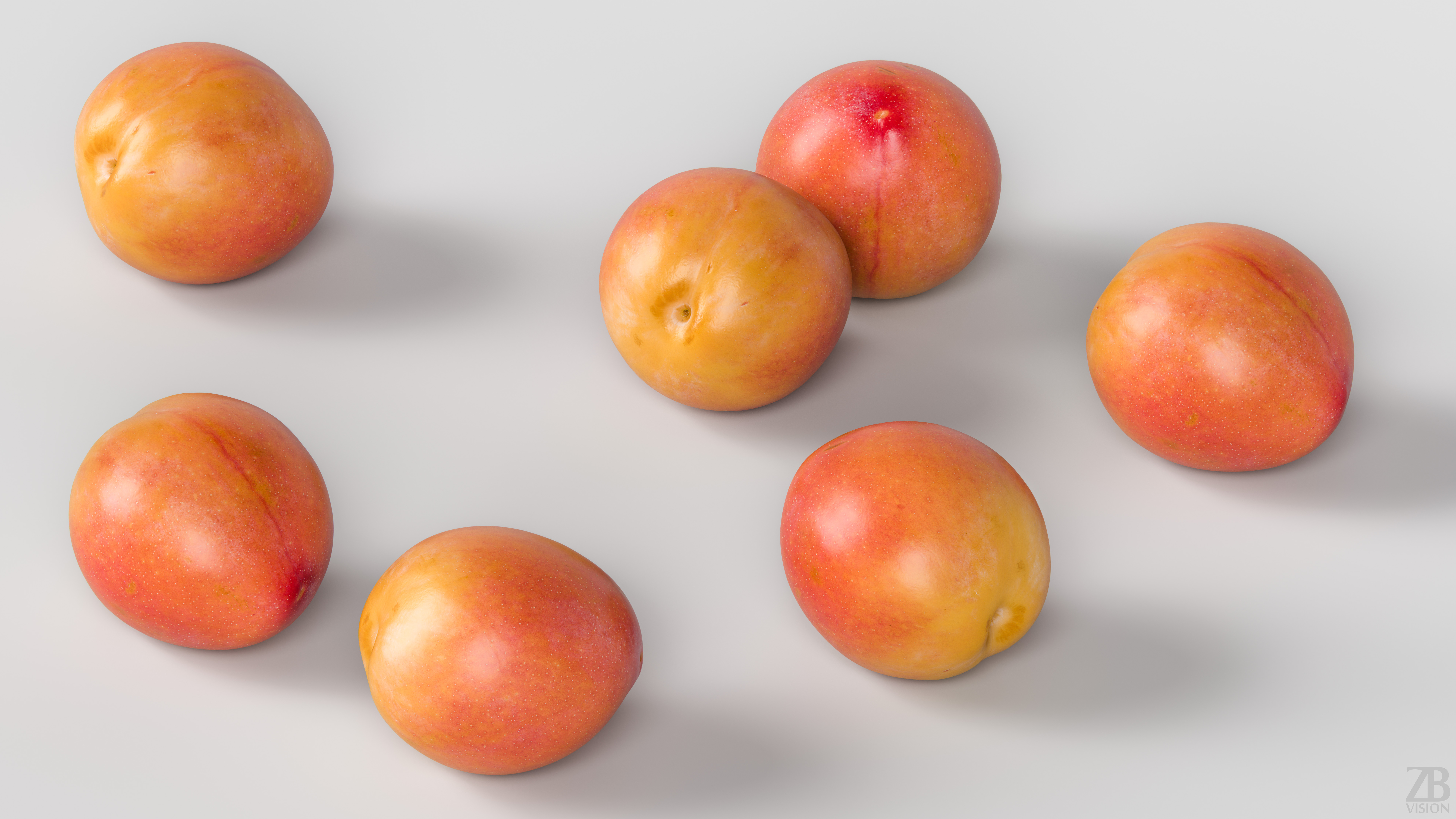 This is a 3D model of a plum. It was scanned and prepared for photorealistic renderings, close-ups, stills, and animation. The plum model is ready to be inserted into your scene out of the box.