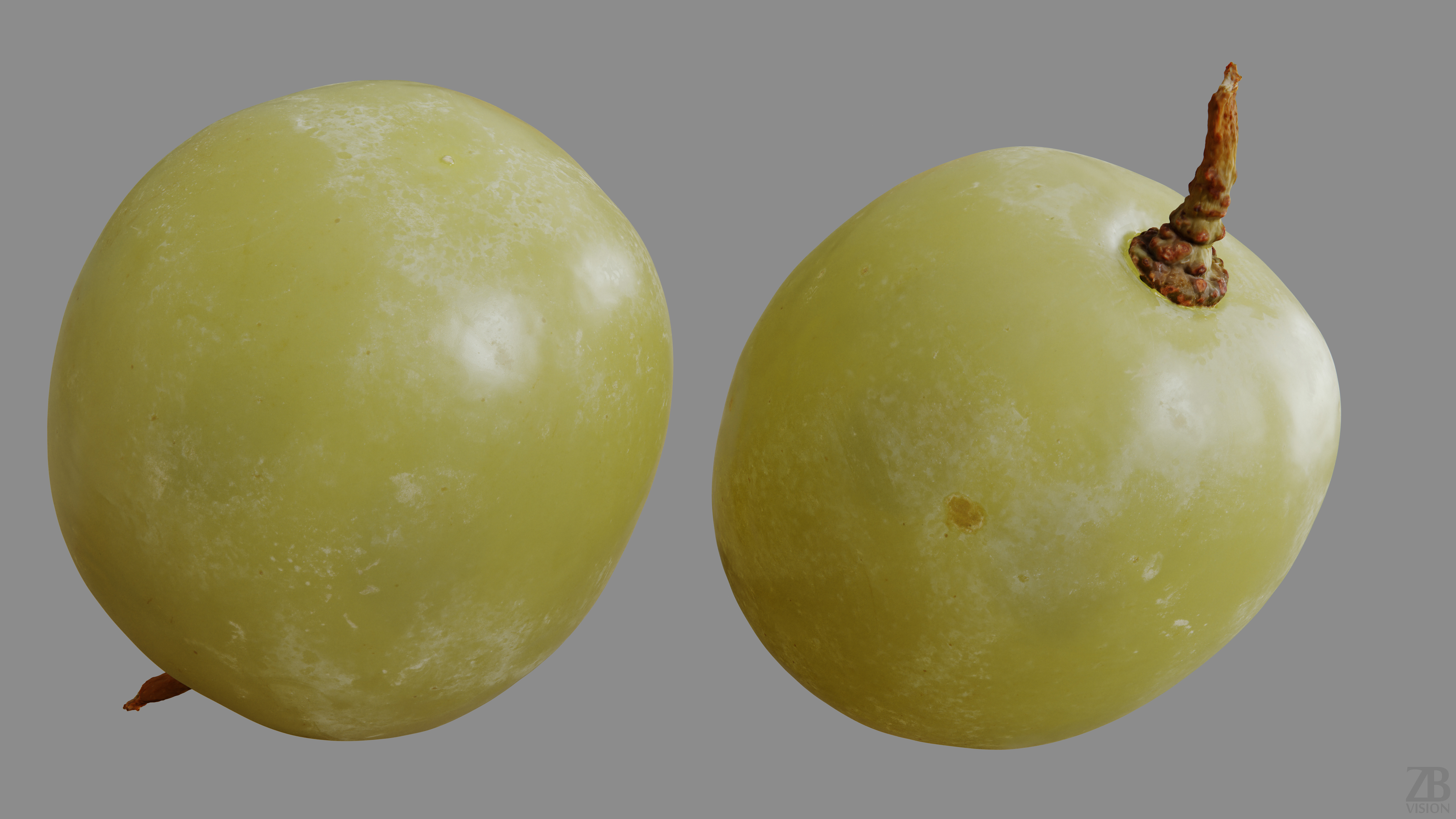 This is a 3D model of a grape. It was scanned and prepared for photorealistic renderings, close-ups, stills, and animation. The grape model is ready to be inserted into your scene out of the box.