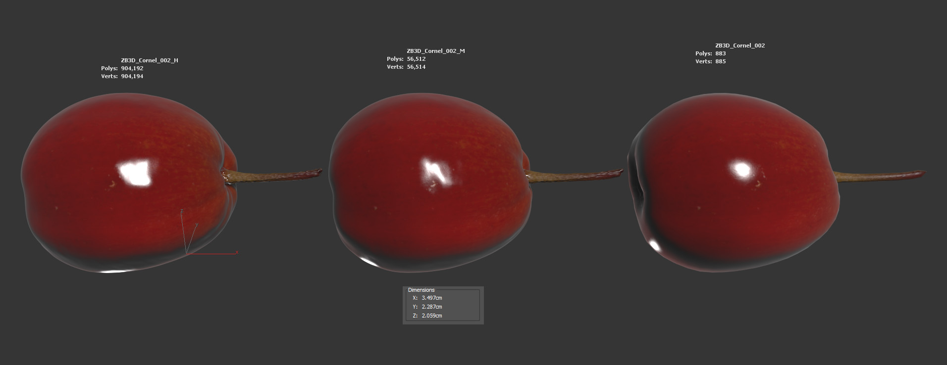 Cornel 3D model is available here: https://www.cgtrader.com/3d-models/food/fruit/cornel-002