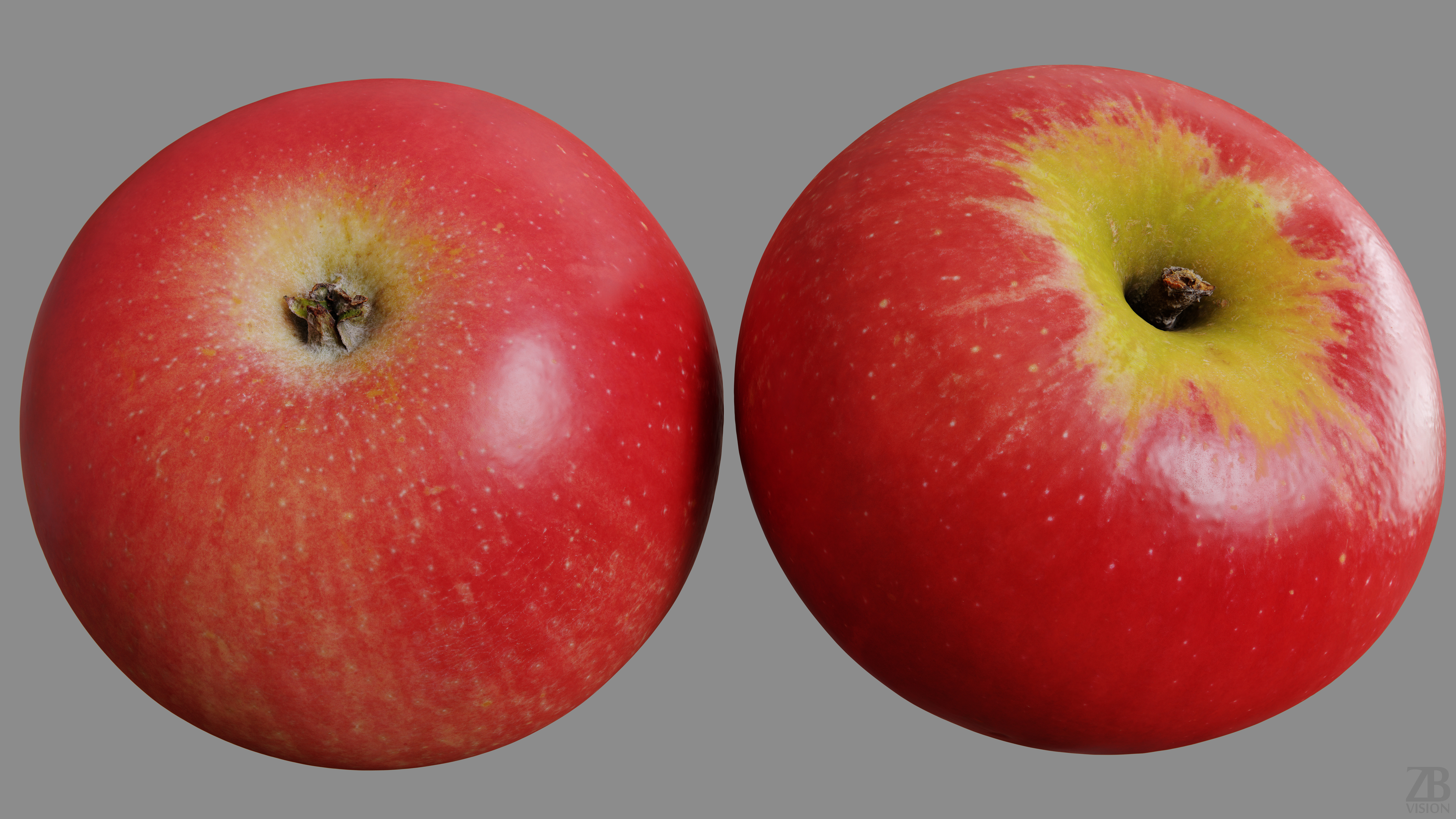 This is a 3D model of an apple. It was scanned and prepared for photorealistic renderings, close-ups, stills, and animation. The apple model is ready to be inserted into your scene out of the box.