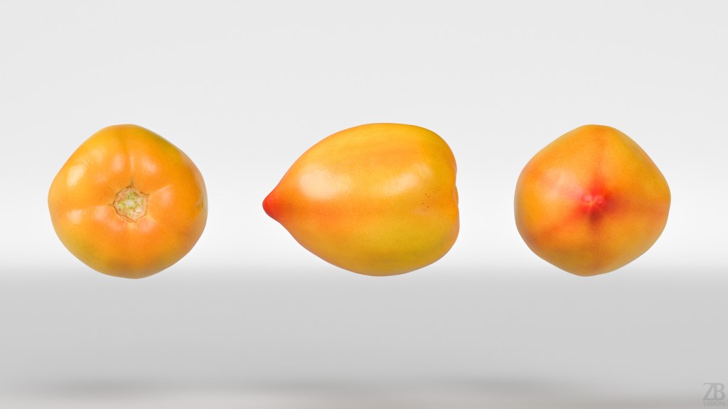 This is a 3D model of a tomato. It was scanned and prepared for photorealistic renderings, close-ups, stills, and animation. The tomato model is ready to be inserted into your scene out of the box.
