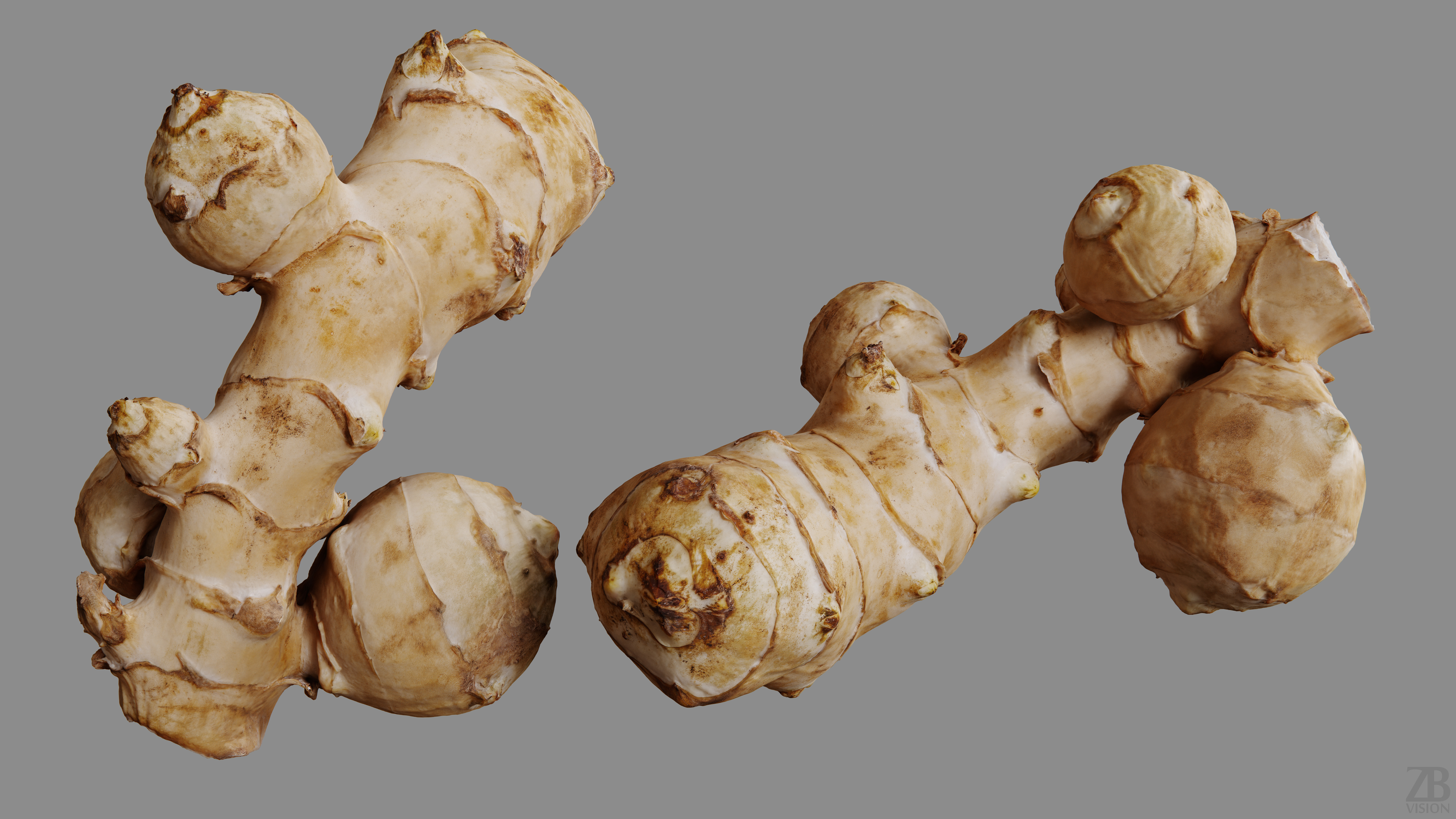 This is a 3D model of a topinambur aka jerusalem artichoke. It was scanned and prepared for photorealistic renderings, close-ups, stills, and animation. The topinambur model is ready to be inserted into your scene out of the box.