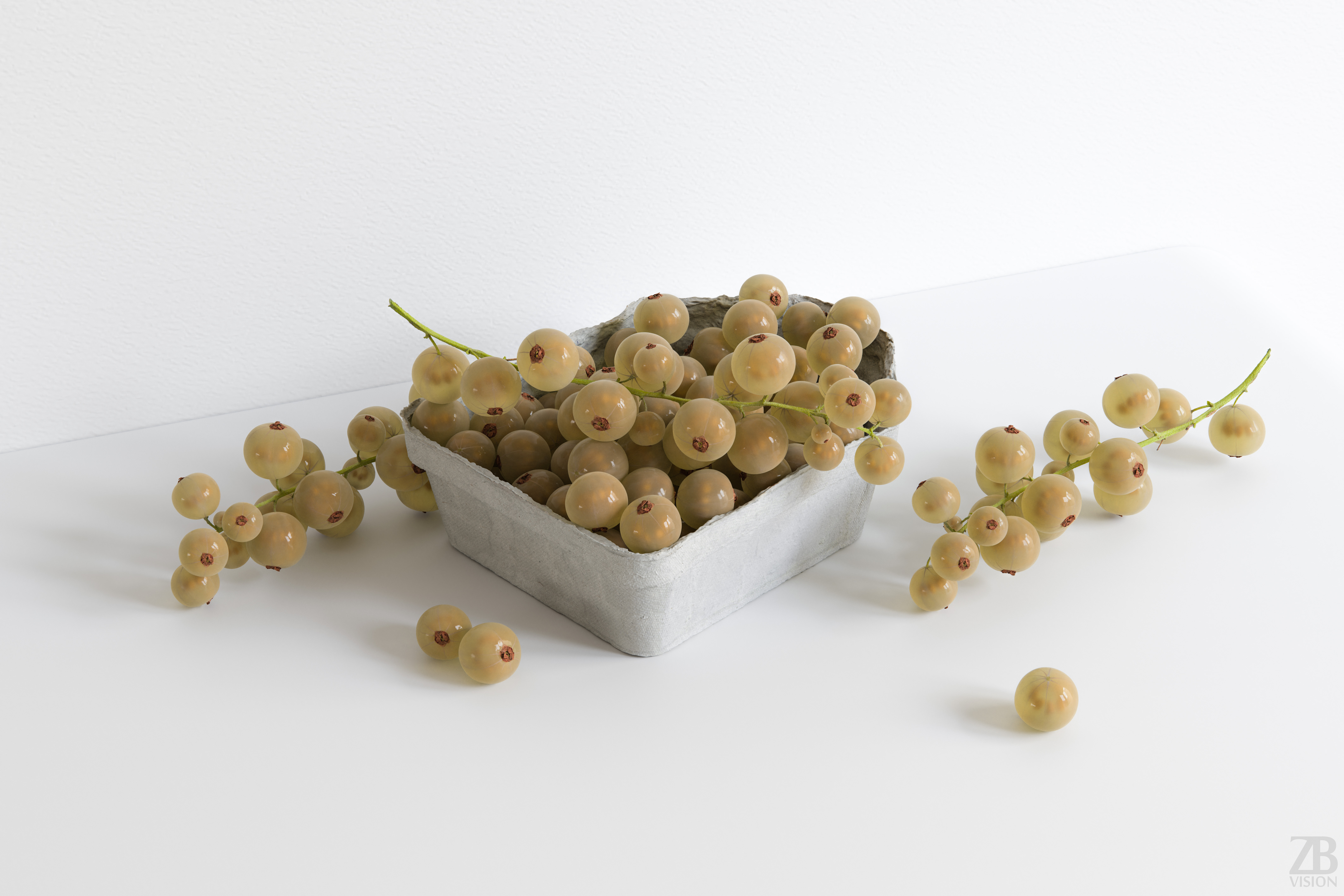 This is a 3D model of a white currant. It was scanned and prepared for photorealistic renderings, close-ups, stills, and animation. The white currant model is ready to be inserted into your scene out of the box.