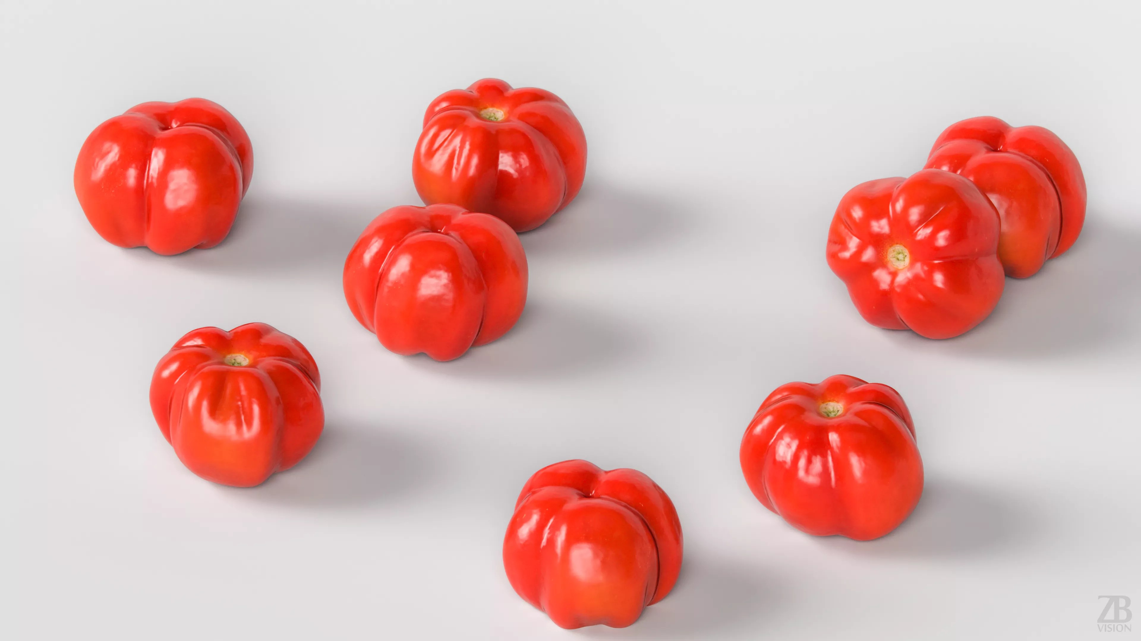 This is a 3D model of a tomato. It was scanned and prepared for photorealistic renderings, close-ups, stills, and animation. The tomato model is ready to be inserted into your scene out of the box.