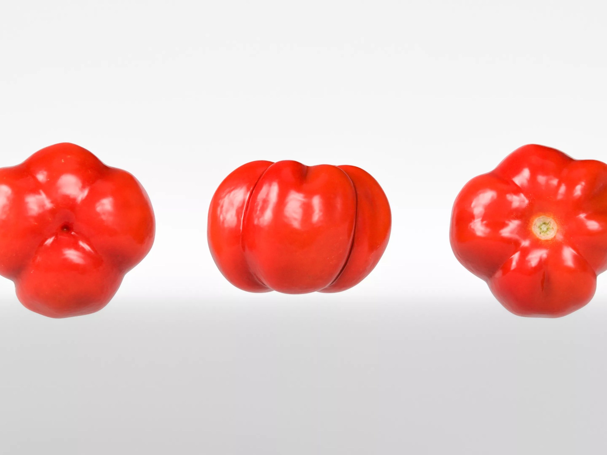 This is a 3D model of a tomato. It was scanned and prepared for photorealistic renderings, close-ups, stills, and animation. The tomato model is ready to be inserted into your scene out of the box.
