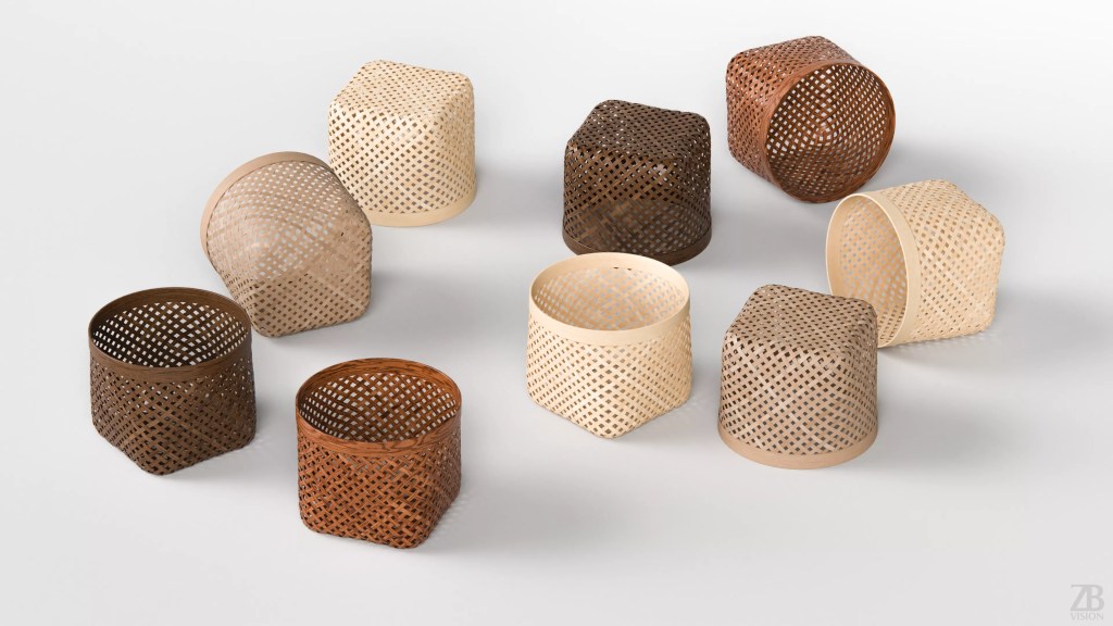 4 sets of 3 maps each are supplied with this model to obtain various wooden looks as visible on the renders. Textures supplied are in JPG format and are in 2K, 4K, and 8K resolution. The texture maps include diffuse, roughness, and normal. The woven basket model is properly uvw unwrapped.
