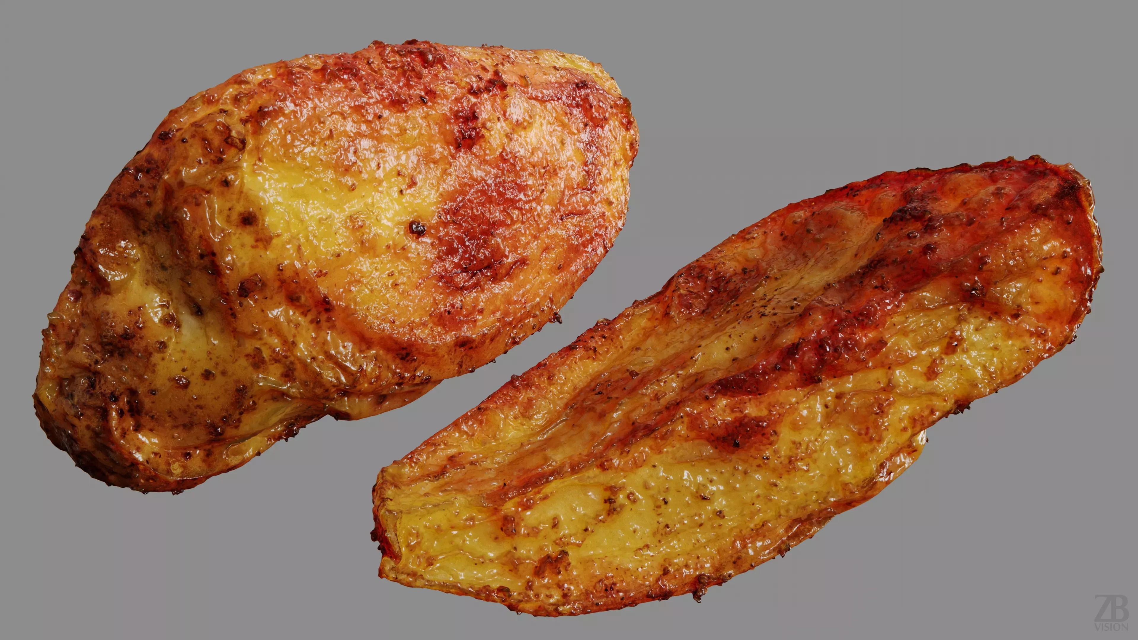 This is a 3D model of a baked potato. It was scanned and prepared for photorealistic renderings, close-ups, stills, and animation. The baked potato model is ready to be inserted into your scene out of the box.
