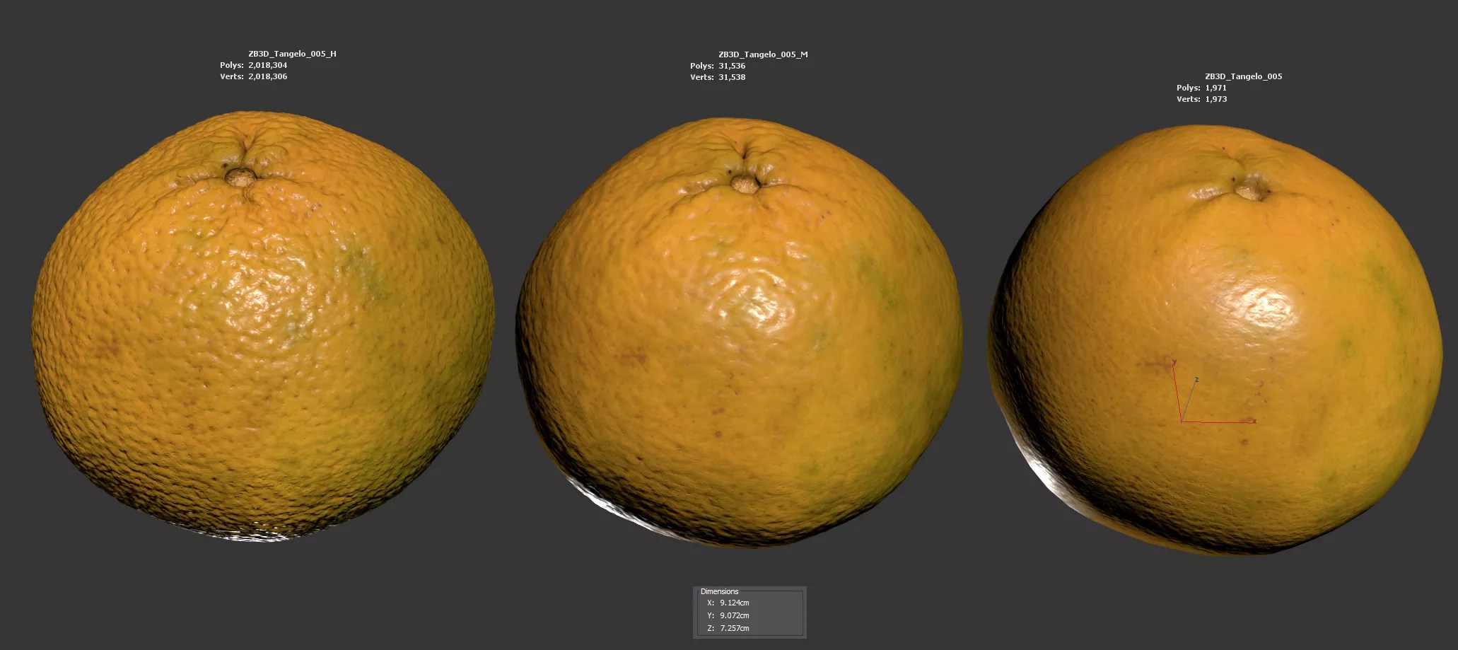 Enhance your food visualizations, product designs, or still-life projects with this ultra-realistic 3D tangelo model. Meticulously photogrammetry scanned and textured, it boasts multiple levels of detail (2K, 31K, 2018K polycounts) for close-ups and broader scenes.