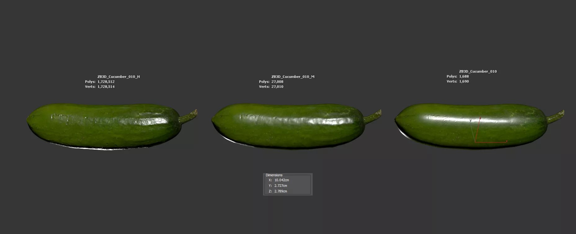 Enhance your food visualizations, product designs, or still-life projects with this ultra-realistic 3D gherkin model. Meticulously photogrammetry scanned and textured, it boasts multiple levels of detail (1K, 27K, 1728K polycounts) for close-ups and broader scenes.
