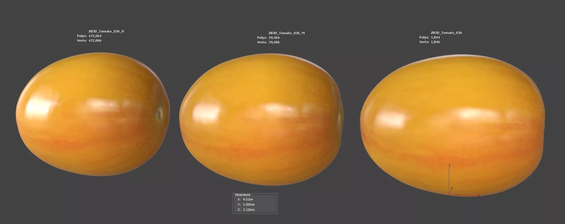 Enhance your food visualizations, product designs, or still-life projects with this ultra-realistic 3D tomato model. Meticulously photogrammetry scanned and textured, it boasts multiple levels of detail (2K, 29K, 472K polycounts) for close-ups and broader scenes.