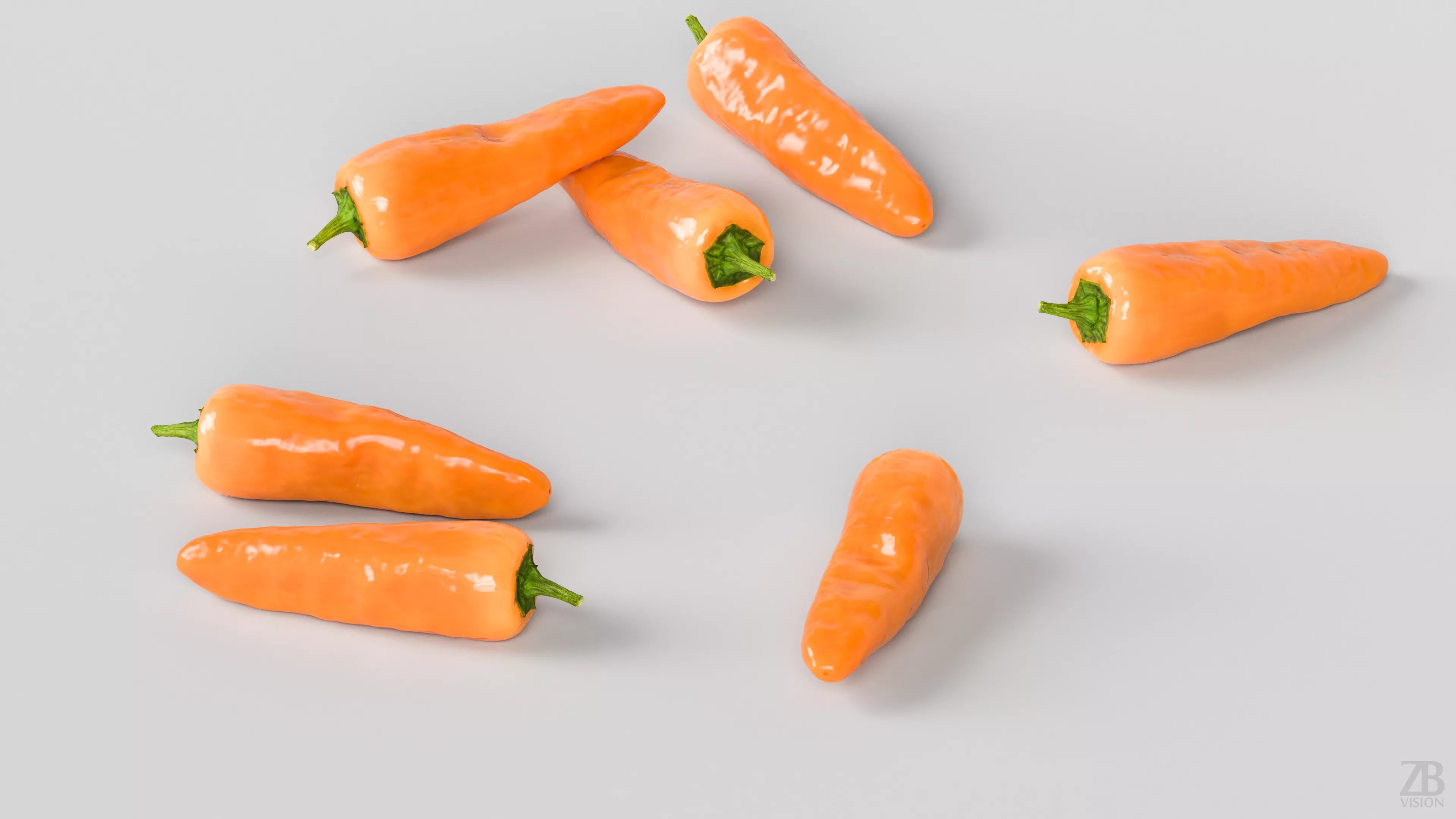 Tequila Sunrise Chile pepper 3D model is available here: https://www.cgtrader.com/3d-models/food/vegetable/tequila-sunrise-chile