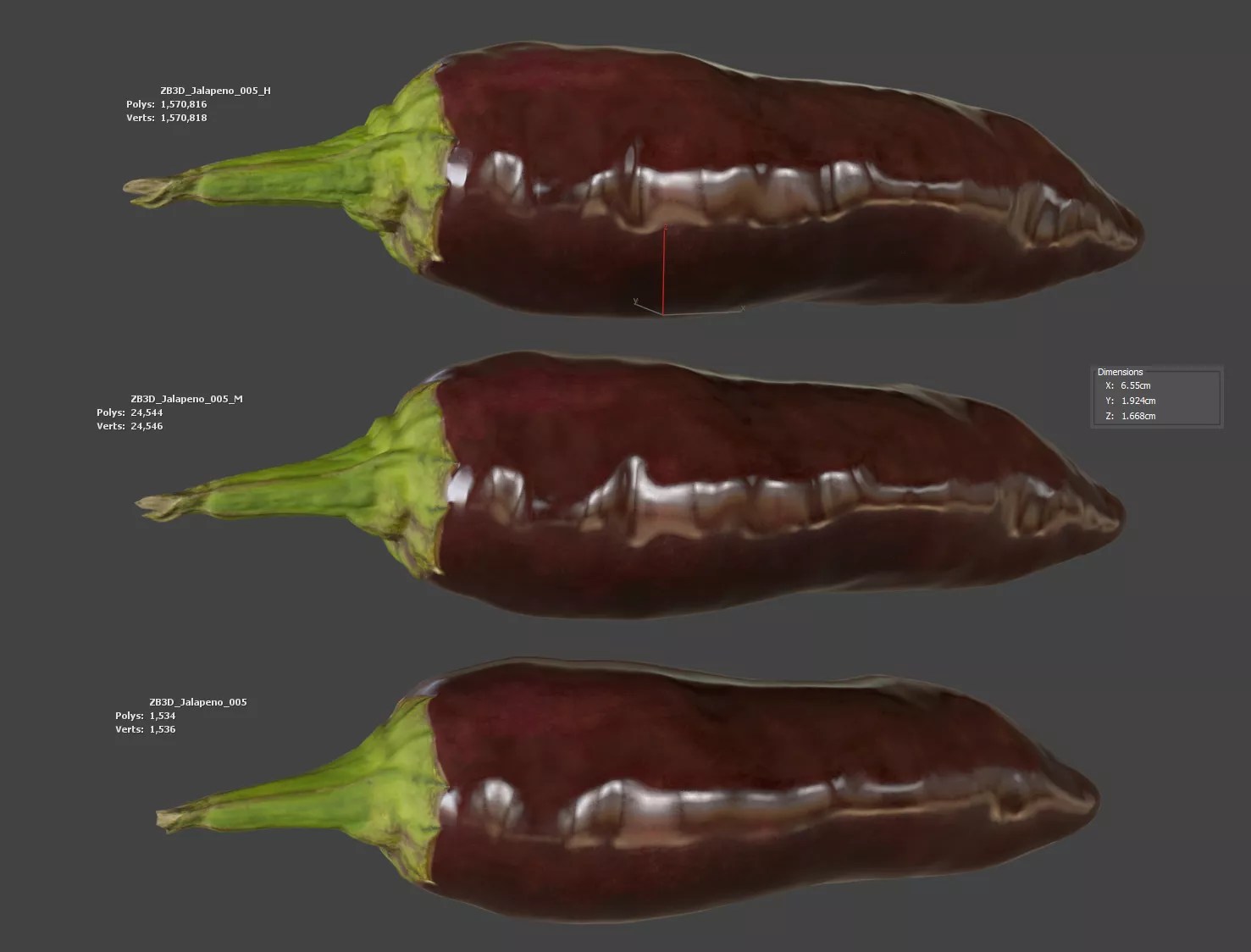 Enhance your visualizations, product designs, or still-life projects with this ultra-realistic 3D jalapeno model. Meticulously photogrammetry scanned and textured, it boasts multiple levels of detail (1K, 24K, 1570K polycounts) for close-ups and broader scenes.