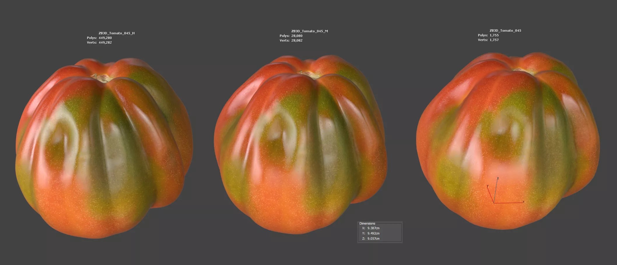 Enhance your visualizations, product designs, or still-life projects with this ultra-realistic 3D tomato model. Meticulously photogrammetry scanned and textured, it boasts multiple levels of detail (2K, 28K, 449K polycounts) for close-ups and broader scenes.