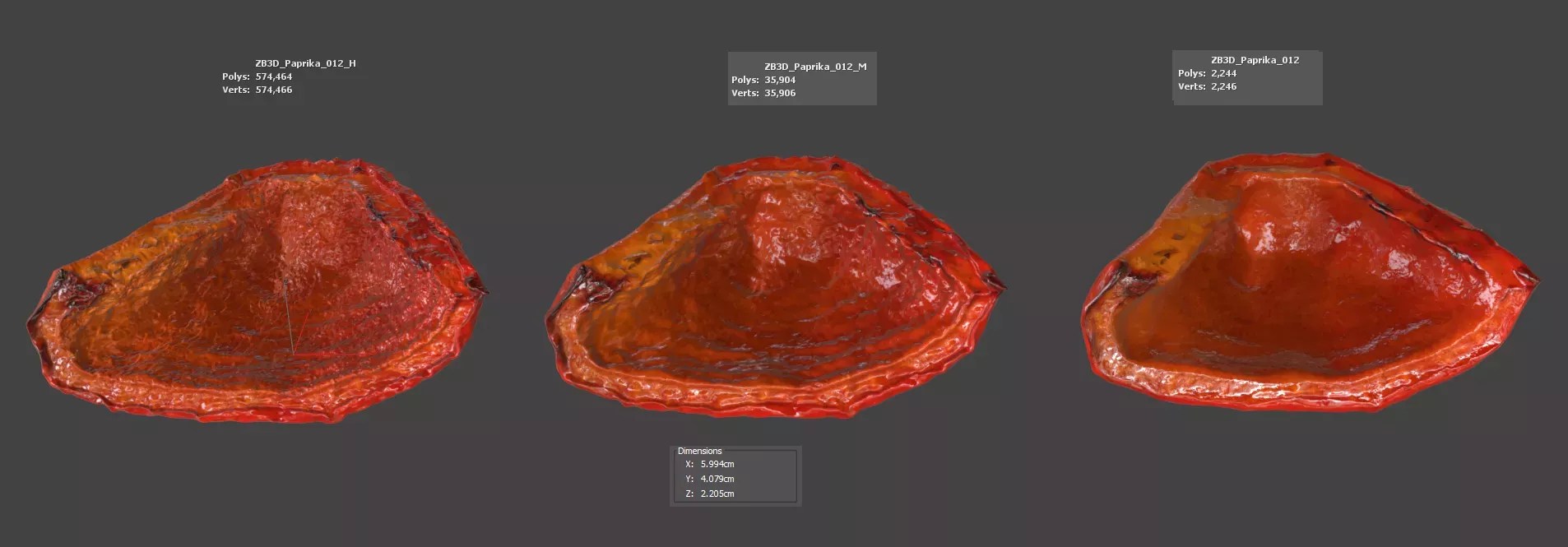 Enhance your visualizations, product designs, or still-life projects with this ultra-realistic 3D pepper model. Meticulously photogrammetry scanned and textured, it boasts multiple levels of detail (2K, 35K, 574K polycounts) for close-ups and broader scenes.