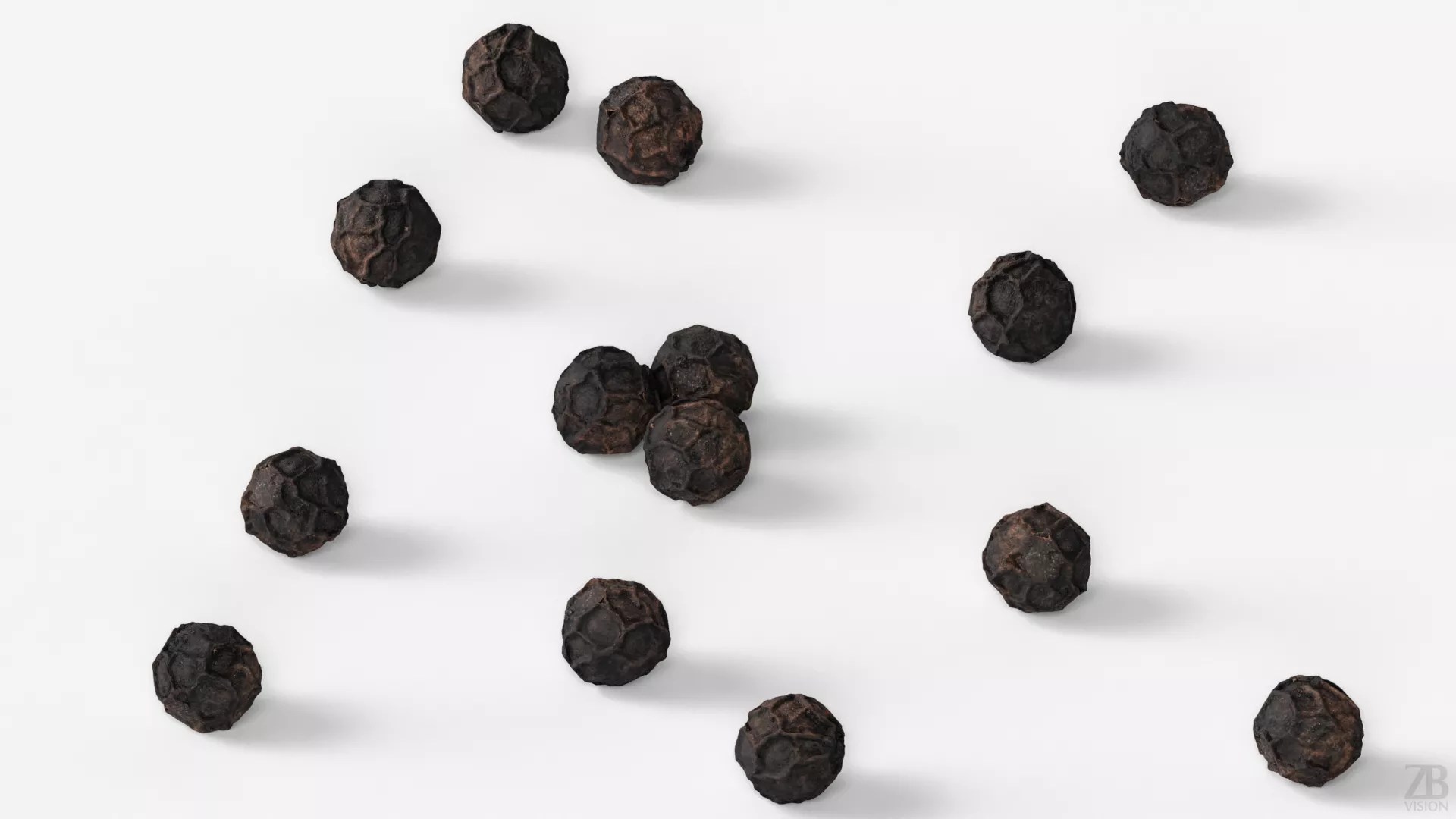 Black pepper 3D model is available here: https://www.cgtrader.com/3d-models/food/miscellaneous/pepper-001
