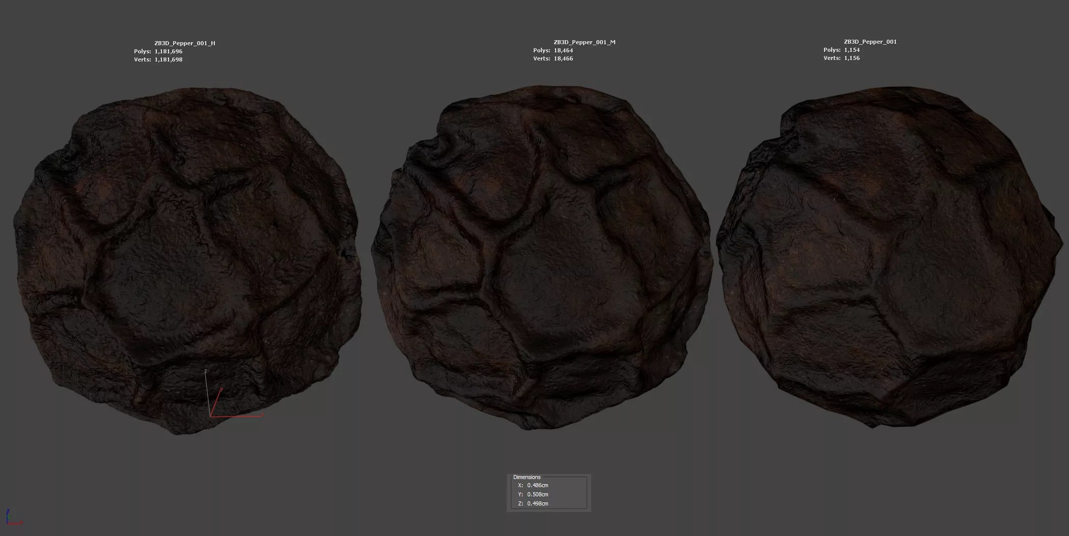 Enhance your visualizations, product designs, or still-life projects with this ultra-realistic 3D black pepper model. Meticulously photogrammetry scanned and textured, it boasts multiple levels of detail (1K, 18K, 1181K polycounts) for close-ups and broader scenes.