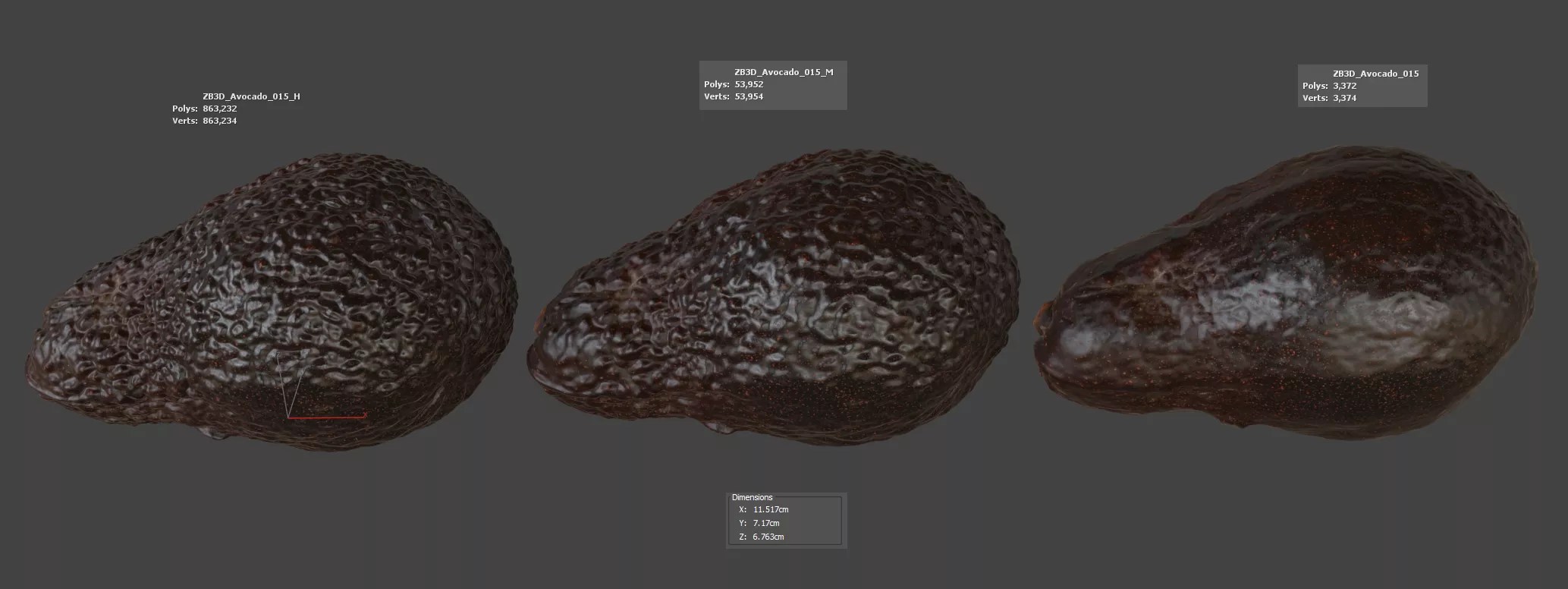 Enhance your visualizations, product designs, or still-life projects with this ultra-realistic 3D avocado model. Meticulously photogrammetry scanned and textured, it boasts multiple levels of detail (3K, 53K, 863K polycounts) for close-ups and broader scenes.
