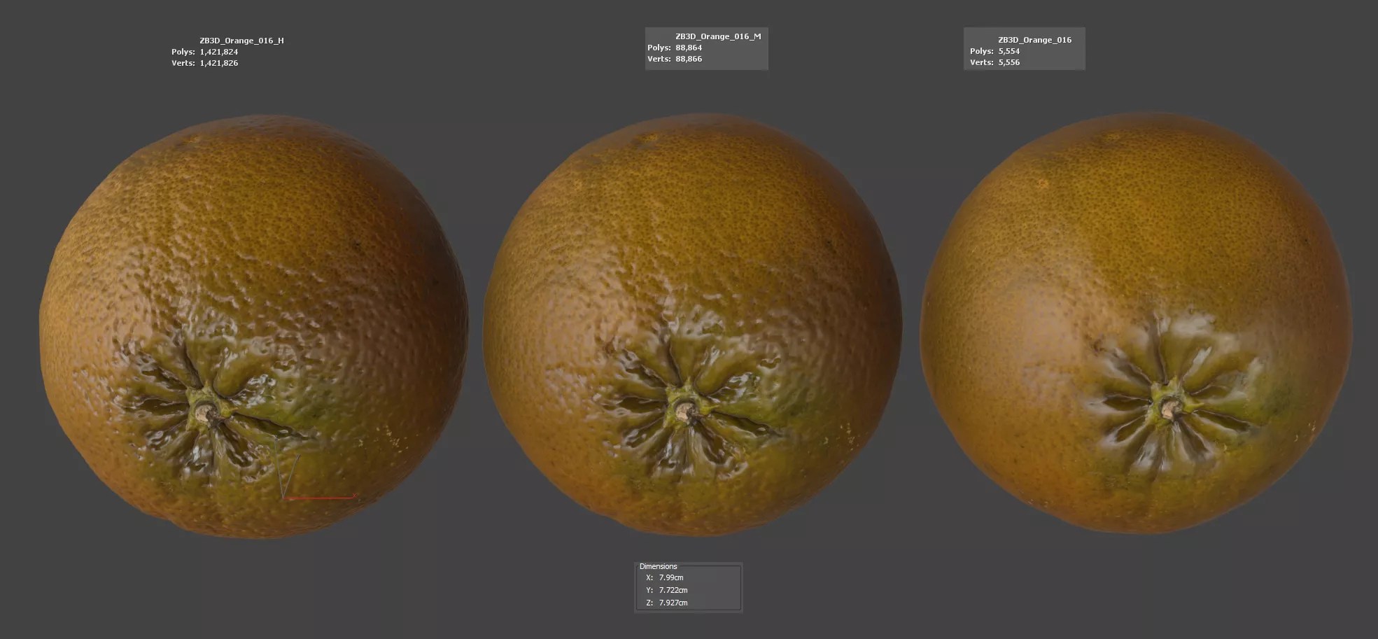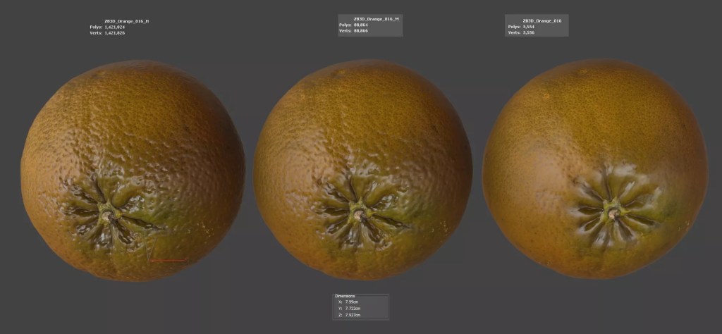 Enhance your visualizations, product designs, or still-life projects with this ultra-realistic 3D orange model. Meticulously photogrammetry scanned and textured, it boasts multiple levels of detail (5K, 88K, 1421K polycounts) for close-ups and broader scenes.