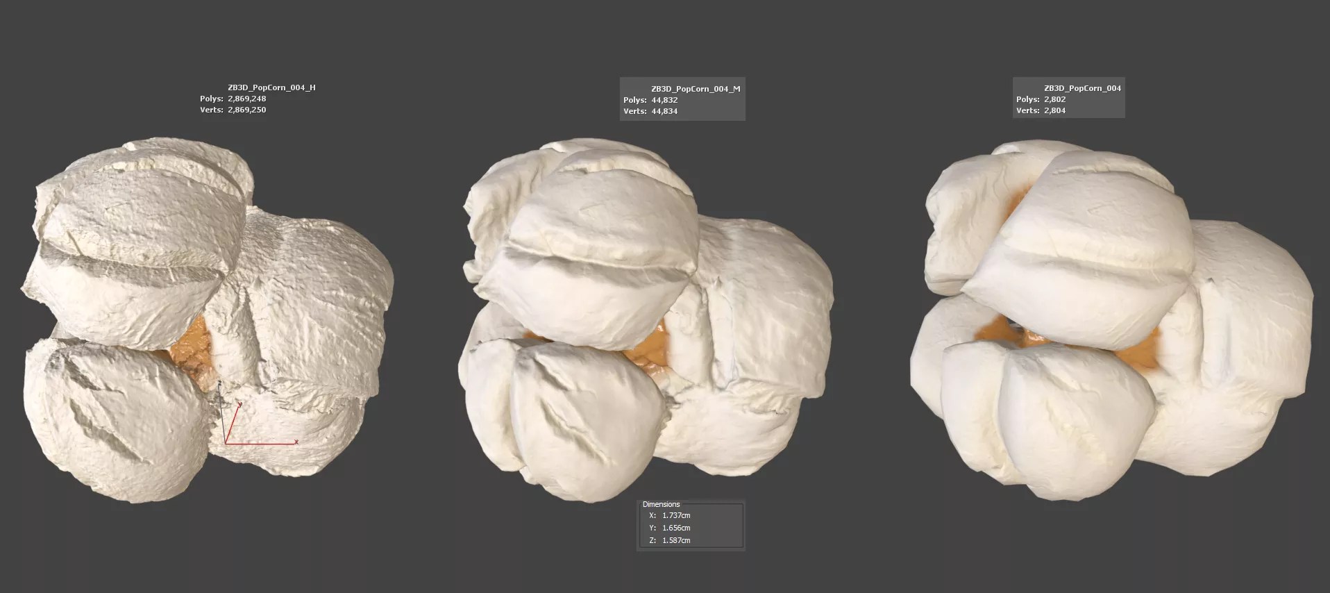 Enhance your visualizations, product designs, or still-life projects with this ultra-realistic 3D popcorn (1, one) piece model. Meticulously photogrammetry scanned and textured, it boasts multiple levels of detail (2K, 44K, 2869K polycounts) for close-ups and broader scenes.