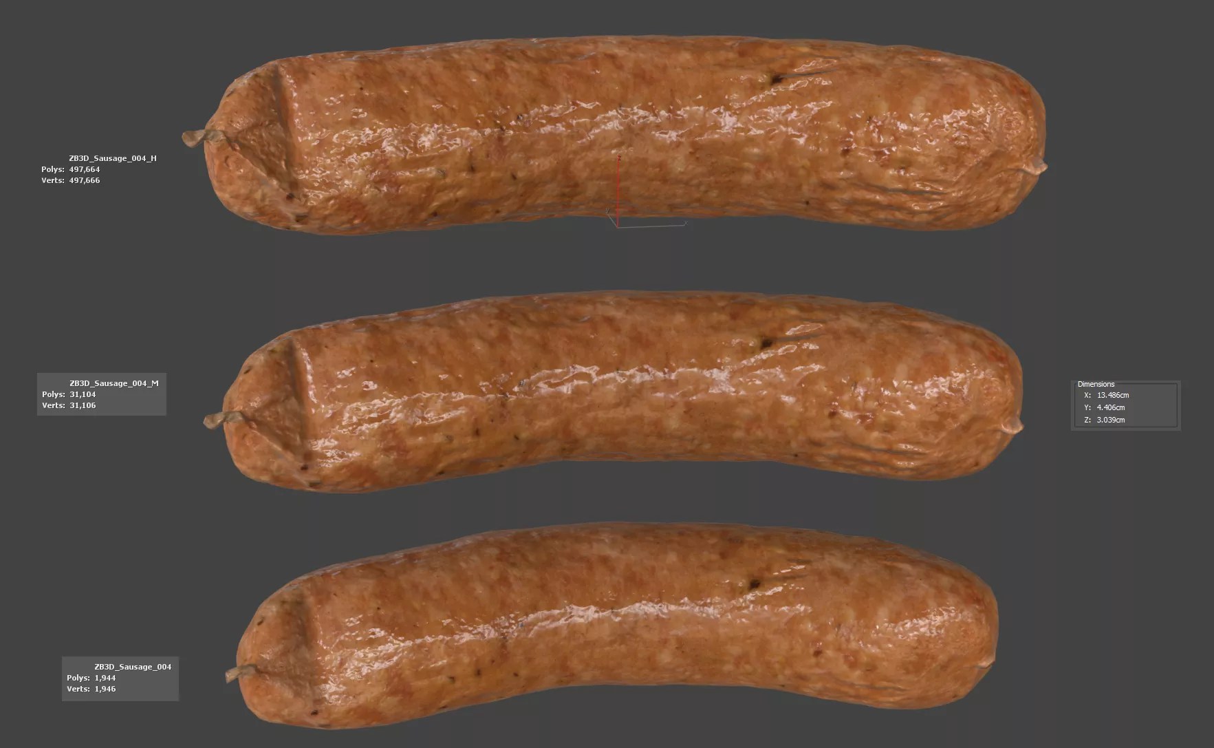 Enhance your visualizations, product designs, or still-life projects with this ultra-realistic 3D sausage model. Meticulously photogrammetry scanned and textured, it boasts multiple levels of detail (2K, 31K, 497K polycounts) for close-ups and broader scenes.