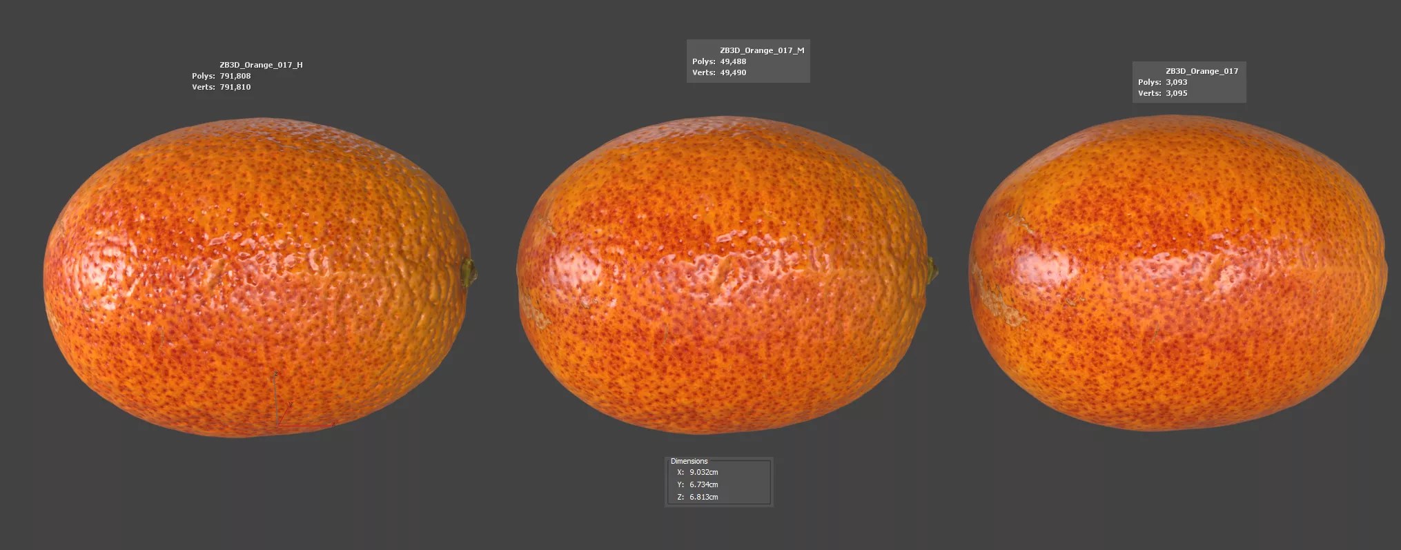 Enhance your visualizations, product designs, or still-life projects with this ultra-realistic 3D blood orange model. Meticulously photogrammetry scanned and textured, it boasts multiple levels of detail (3K, 49K, 791K polycounts) for close-ups and broader scenes.