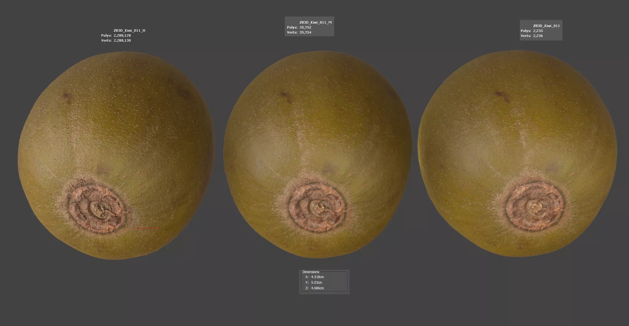 Enhance your visualizations, product designs, or still-life projects with this ultra-realistic 3D red kiwi model. Meticulously photogrammetry scanned and textured, it boasts multiple levels of detail (2K, 35K, 2288K polycounts) for close-ups and broader scenes.
