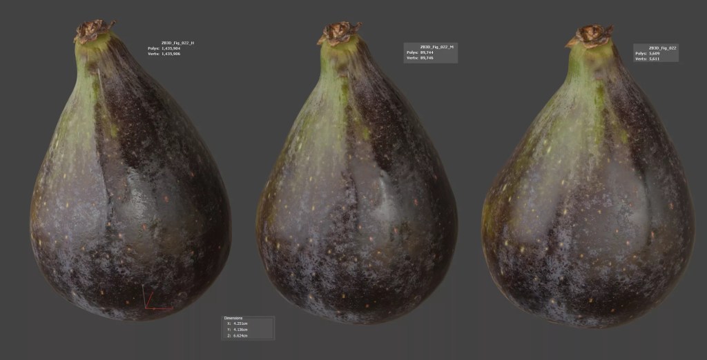 Enhance your visualizations, product designs, or still-life projects with this ultra-realistic 3D fig model. Meticulously photogrammetry scanned and textured, it boasts multiple levels of detail (5K, 89K,1435K polycounts) for close-ups and broader scenes.