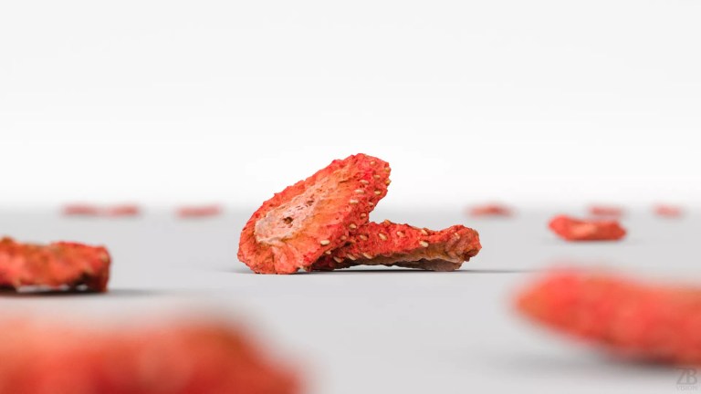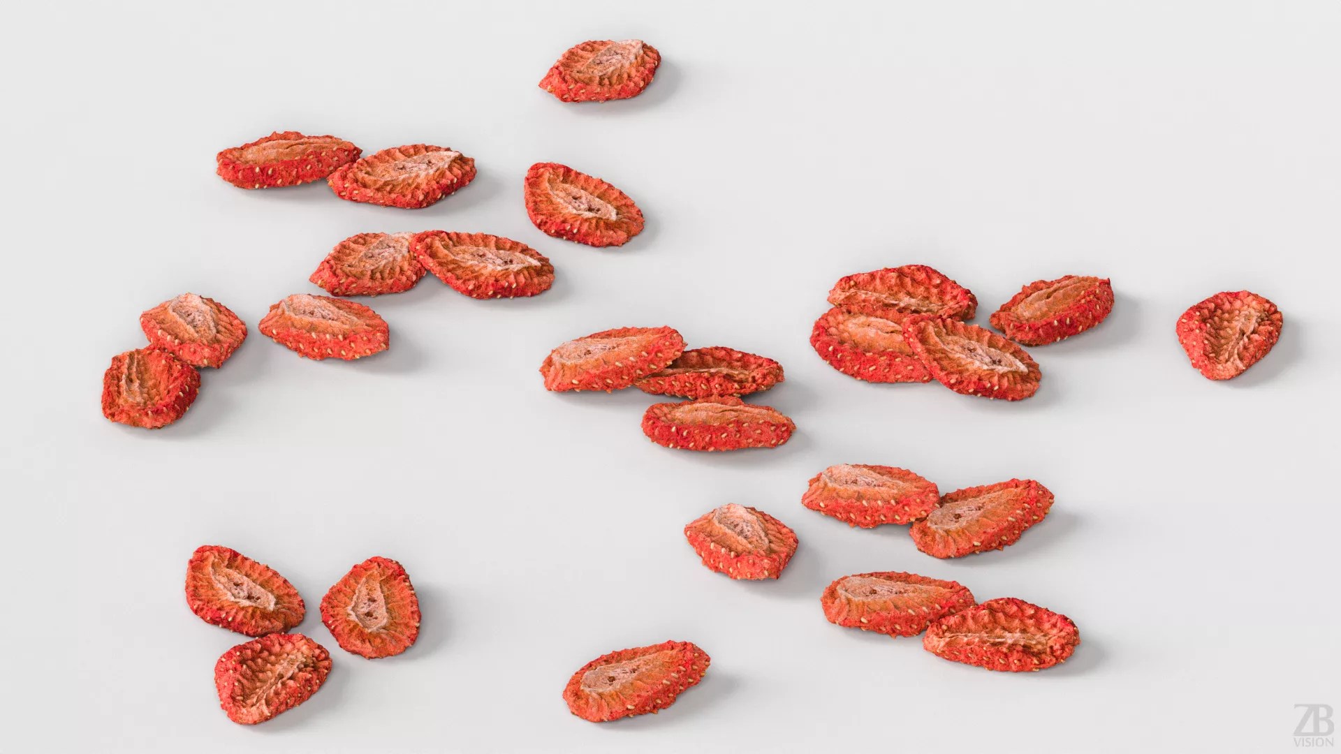 Dried strawberry slice 3D model is available here: https://www.cgtrader.com/3d-models/food/fruit/strawberry-003