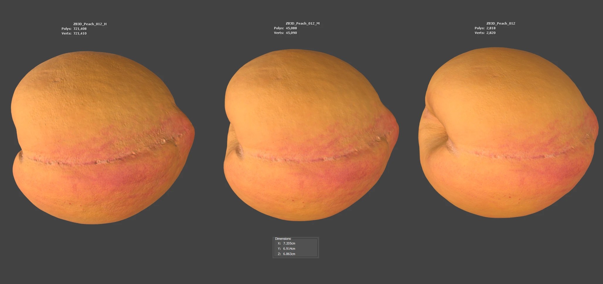 Enhance your visualizations, product designs, or still-life projects with this ultra-realistic 3D peach model. Meticulously photogrammetry scanned and textured, it boasts multiple levels of detail (2K, 45K, 721K polycounts) for close-ups and broader scenes.