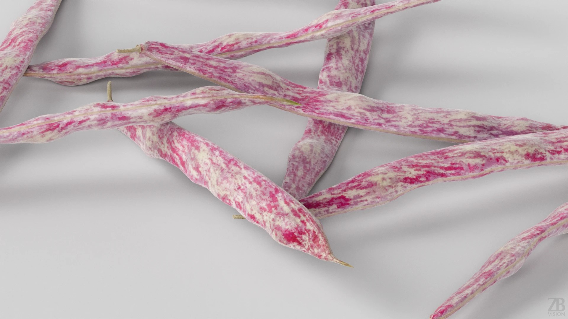 Photorealistic 3D borlotti bean pod model