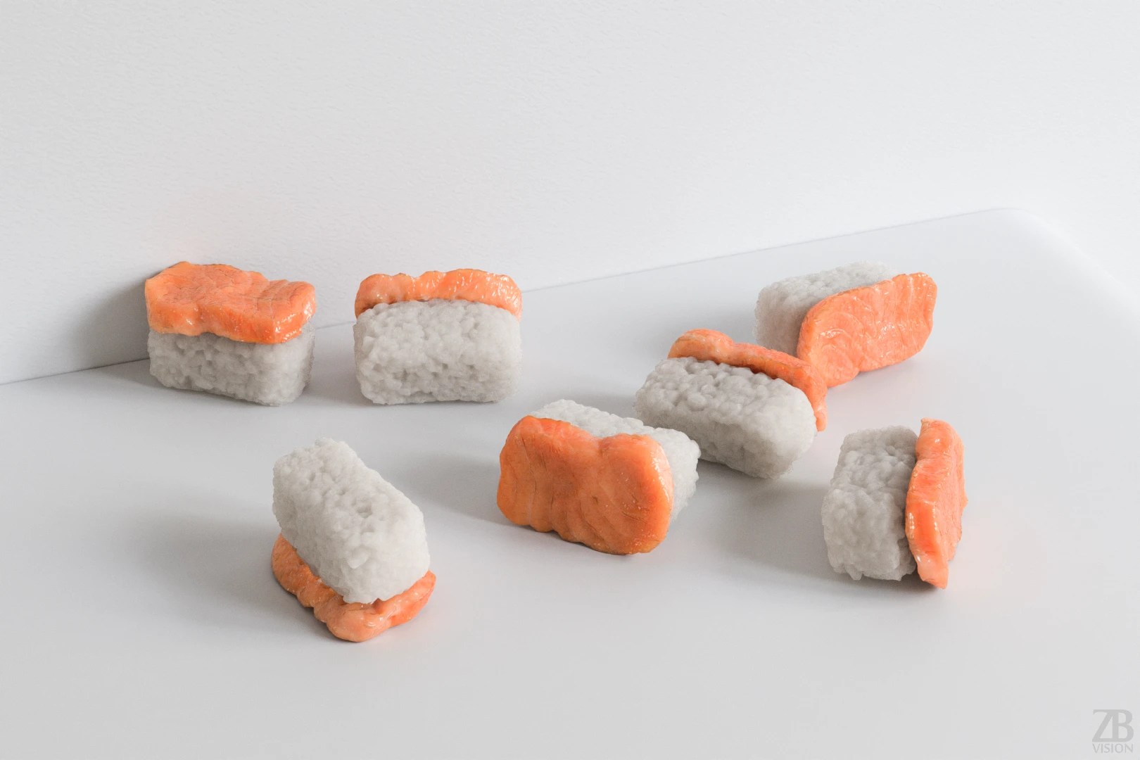 Sushi 3D model is available here: https://www.cgtrader.com/3d-models/food/miscellaneous/sushi-007