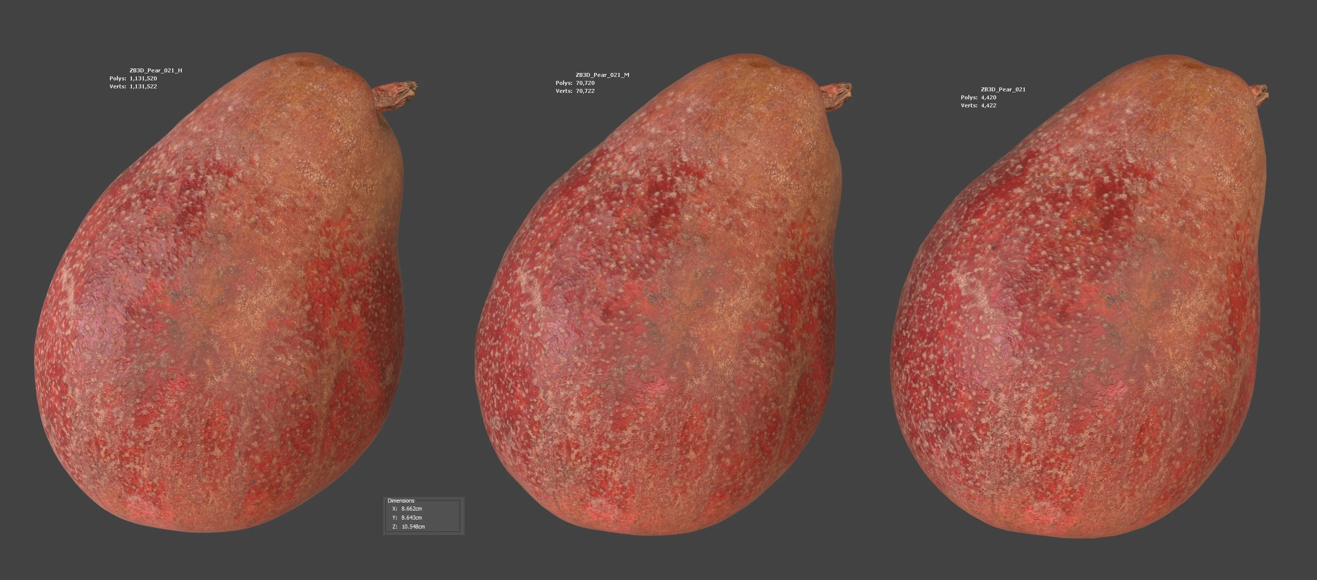 Enhance your visualizations, product designs, or still-life projects with this ultra-realistic 3D pear model. Meticulously photogrammetry scanned and textured, it boasts multiple levels of detail (4K, 70K, 1131K polycounts) for close-ups and broader scenes.